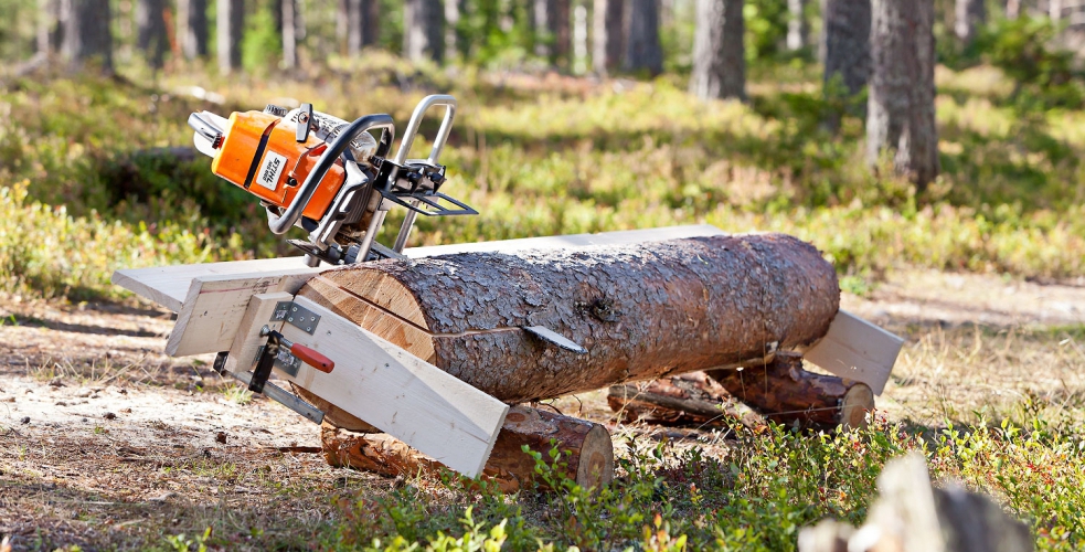 Lisavarustus: LOGOSOL Timberjig juhtrelsside komplekt 3x1m (Big Mill Basic), STIHL mootorsaag MS 391 ja MS 661